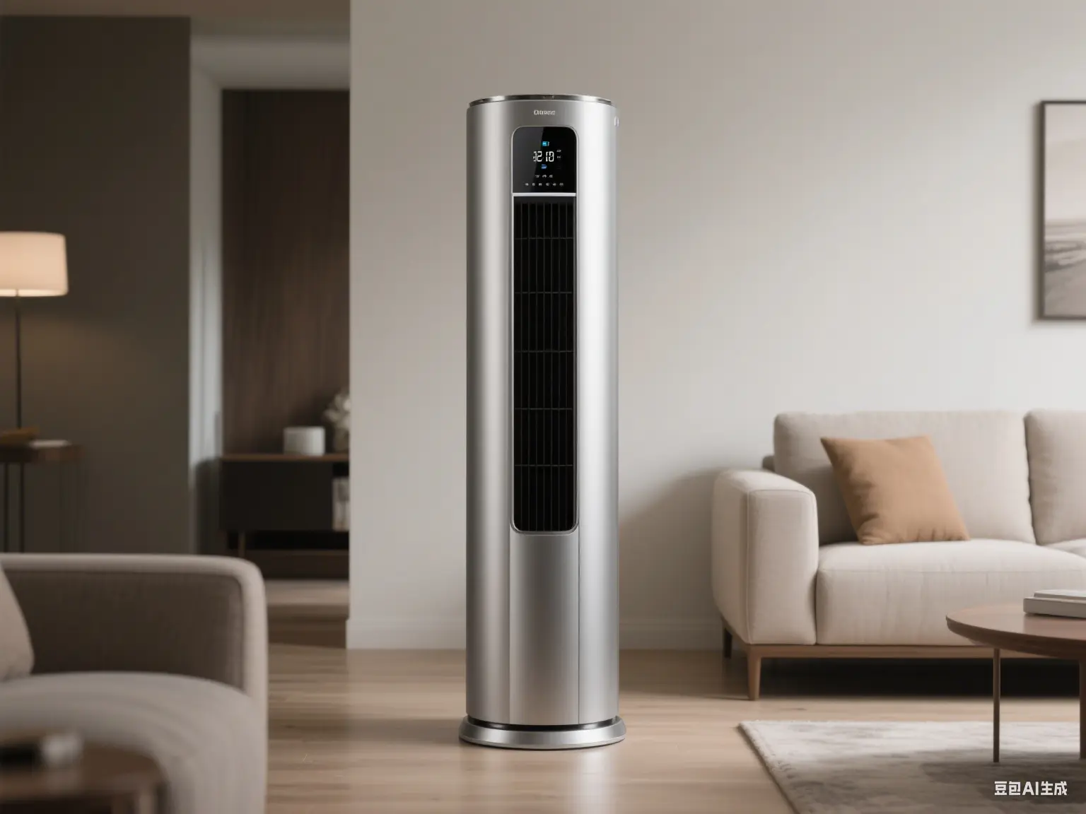 立櫃式空調外觀高級大氣,銀色機身彰顯時尚品味。具備大匹數制冷制熱能力,適用於客廳等大空間 。智慧數顯屏可輕鬆調節運行模式,快速為您營造宜人的室內環境,是家居空調的理想之選。